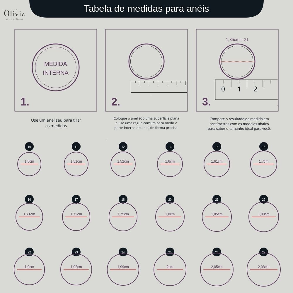 - Guarde sua semijoia OLÏVIA em saquinhos ou compartimentos separados para evitar atrito com outras peças.
